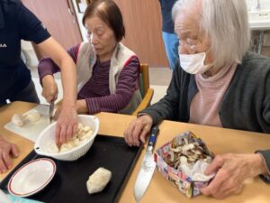 午後には、お正月に食べるおせち料理をご利用者様で協力して作って頂きました