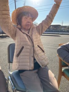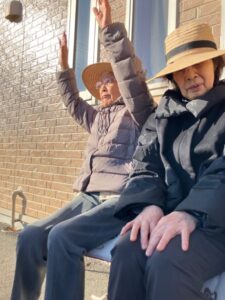 筋力を落とさない為にも家族レターにも記載している機能訓練は外気浴の際、欠かさずに行うようにしています
