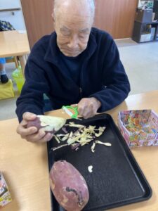 皆様の顔より大きい薩摩芋で「おおきなさつまいもだなぁ」と剝くのが大変だなと仰りながら
