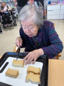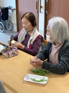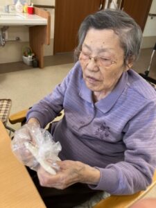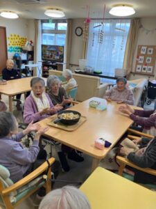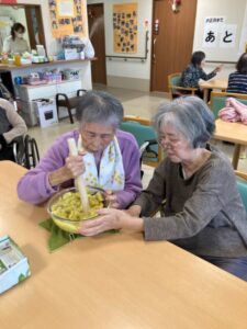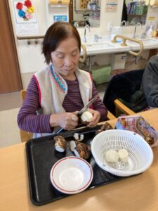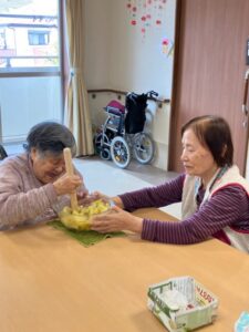 午後には、お正月に食べるおせち料理をご利用者様で協力して作って頂きました
