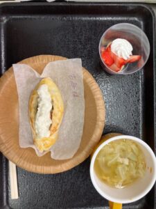 パンを二つに分けている方がいたり、手が真っ白だと見せてくれる方もいらっしゃいました。