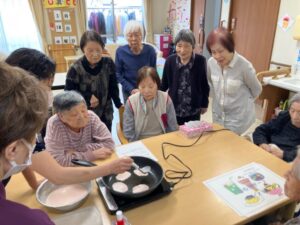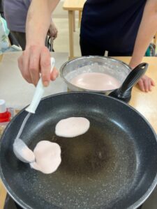 桜餅も本格的で生地を焼くのに皆さん興味津々😲桜餅を包むのも楽しそうでした🙌