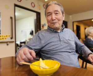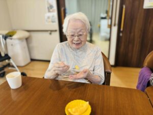 ご入居者はメロンを切っている時にも「香りがすごいね!美味しそう!」と期待の眼差しで、