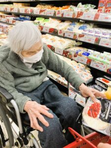 この日は、お誕生会に向けてケーキの材料を買いにご入居者と行ってきました☺