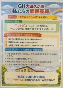 ホーム長、リーダー3名で話し合い、ホーム独自の価値基準のポスターを作成。