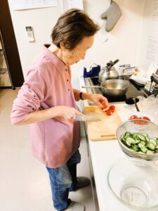 手慣れた手つきで材料を切ったりサンドイッチ作りに取り組まれていました☺