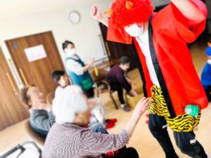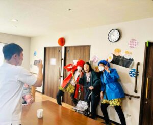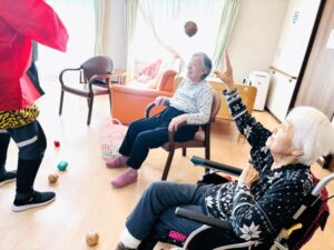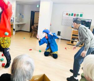 「鬼は外!」と掛け声に合わせて豆ボールを投げて楽しまれました☺