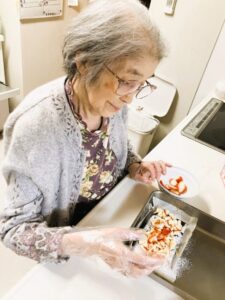 甘い香りに包まれながらスタッフとご入居者で協力しながら行い、楽しい時間を過ごすことができました!