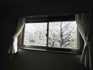 ちょっと見えずらいですが窓の前に桜の木があります!