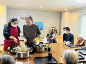 この間、フィリピン出身のスタッフによるフィリピン料理を皆様で一緒に作って食べました!