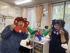 愛の家グループホーム大阪都島中通の玄関アートも万博閉幕に合わせて、