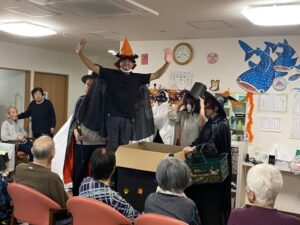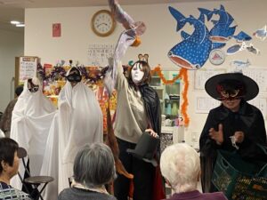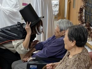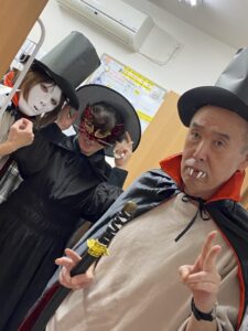 ドラキュラが近づいてきて、ビビられているご入居者様の第一声が