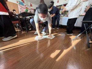 そして、シャンメリーの勢い良かったので床がボトボトになり、