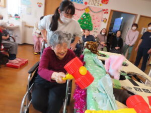 サンタさんからのプレゼントに大喜びのご入居者様😄