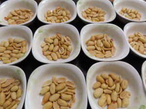 落花生を一粒一粒丁寧に皮をむき、
