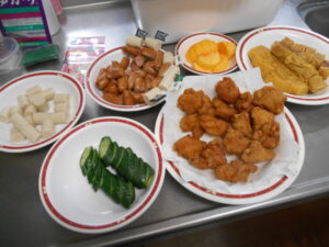 からあげ、ウインナー、卵焼き、ぬか漬け