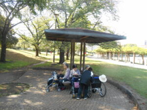 途中、少し休憩しながら、ゆっくりと歩きます。
