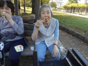 「おにぎりを外で食べたら、美味しいよね♡」と