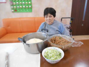 では、皆で具材を包んでいきます(^▽^)/