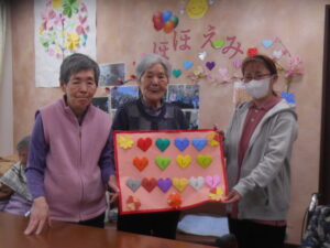 ハートの折り紙は、入居者様の手作りです!