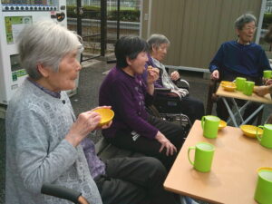 駐車場でお茶会をしました(*^^)v