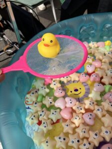 ゲームには、的当て、たこ焼きビンゴ、アヒルすくい、ストラックアウト!