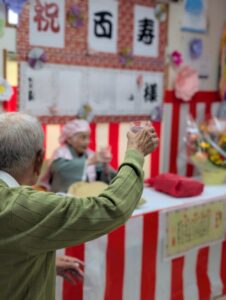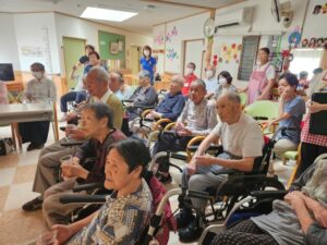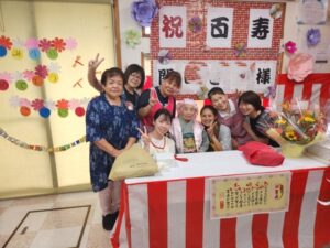 K様のご長寿を全力でお祝いしたいというスタッフの熱意、祝福をして下さる入居者の皆様、ご参加くださったご家族の暖かく優しいまなざし、そしてK様ご自身の晴れやかな笑顔が一体となり、会場はとても温かい雰囲気につつまれました。