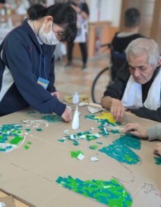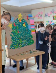午後からは制作活動。みんなで協力して、クリスマスの貼り絵ツリーを完成させました。