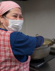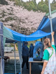 館内では、お花見弁当や温かい豚汁の準備も同時進行。