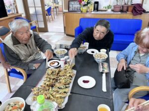 料理作り、会場設営に協力下さった入居者様もやっと一息。