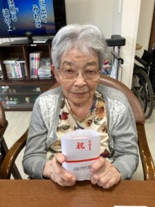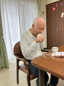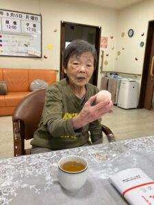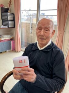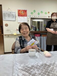 「いつも感謝していますよ」と職員が伝えると恥ずかしそうな表情でニコニコしてくれました。