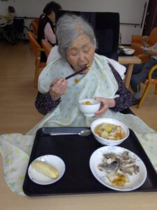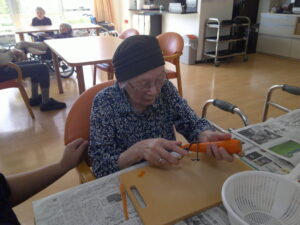 ご利用者には季節野菜たっぷりの汁物に使用する野菜を準備していただきました😀