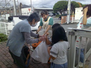 前回ブログで紹介したジャイアントかぼちゃをご利用者様と一緒におすそ分けしてきました。