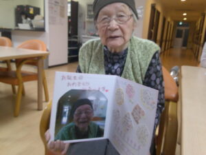 スタッフが用意した色紙と誕生日ケーキをプレゼントいたしました。