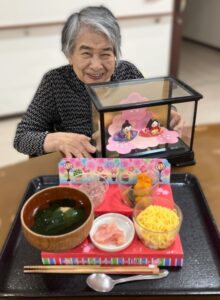 色鮮やかな「ひな祭り御膳」を食べながら大盛り上がり👌