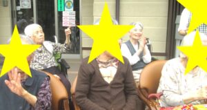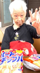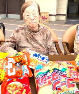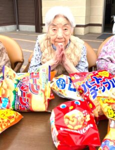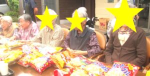 「子供たちにお菓子を配ってください」とお伝えすると、子供が大好きな皆さんは大喜び!