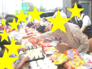 毎年このお祭りでは、神輿を担いでくる子供たちにお菓子や飲み物を配っています。