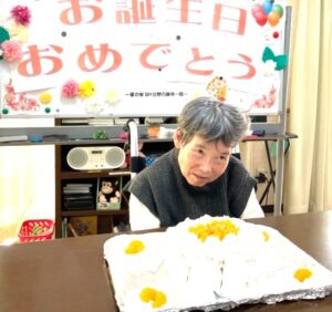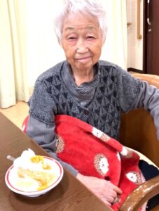 ケーキとプレゼントを贈られたS様、笑顔見られとても嬉しそうです😊