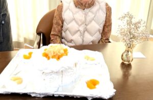K様は職員や他の入居者様からお祝いの言葉を受け取り、「ありがとう」と喜ばれていました!