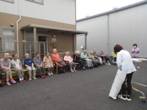 ホームの前の駐車場に皆さん集まって頂き体操を行い