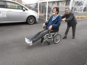 車いすに乗って散歩を行います。