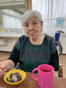 お彼岸の際はおはぎをおやつで召し上がって頂きました☺