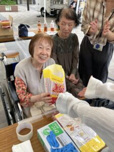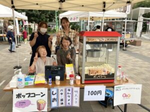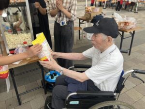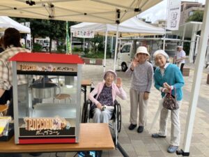 今回もポップコーンの販売を行い、入居者様にも売り子をして頂きましたので、その様子をお届けします。