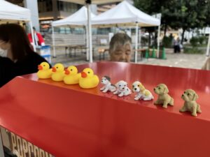 買いに来てくれた学生さんが、お礼にどうぞ!とアヒルと犬を並べてくれました😆(笑)