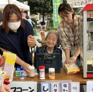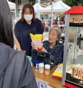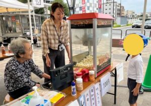 私たちはポップコーン屋さんとして出店し、利用者様が売り子さんとして大活躍!