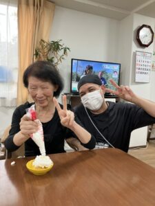 そして施設に戻ってからは、皆さんでお菓子作りをしてお祝いをしました🍰