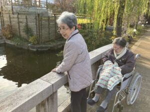 それでも寒さに負けず、しっかり防寒をしてホームでは毎日近所のお散歩をしています。