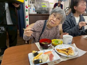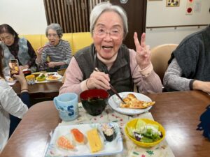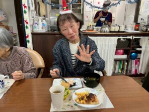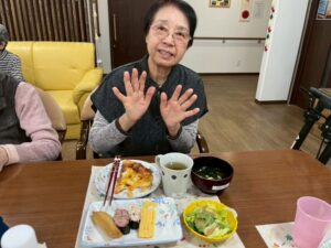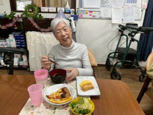 「今日はクリスマス会がありますよ。」とお伝えすると、皆さんお食事を1番楽しみにされているご様子🥣
