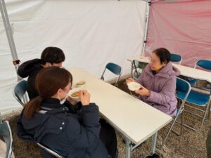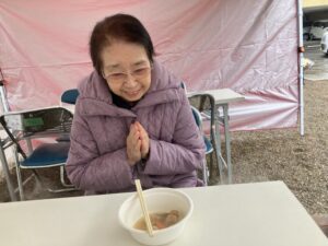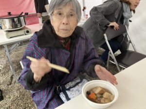 お手伝いをしつつ、空いた時間には熱々の芋煮を食べたり・・・