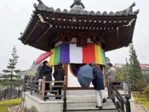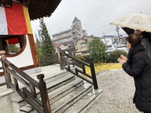 先日、いつもお散歩の時にお邪魔している近くのお寺でのイベントのお手伝いをしました。芋煮汁の配布や、甘酒、お花の配布も手伝いました。